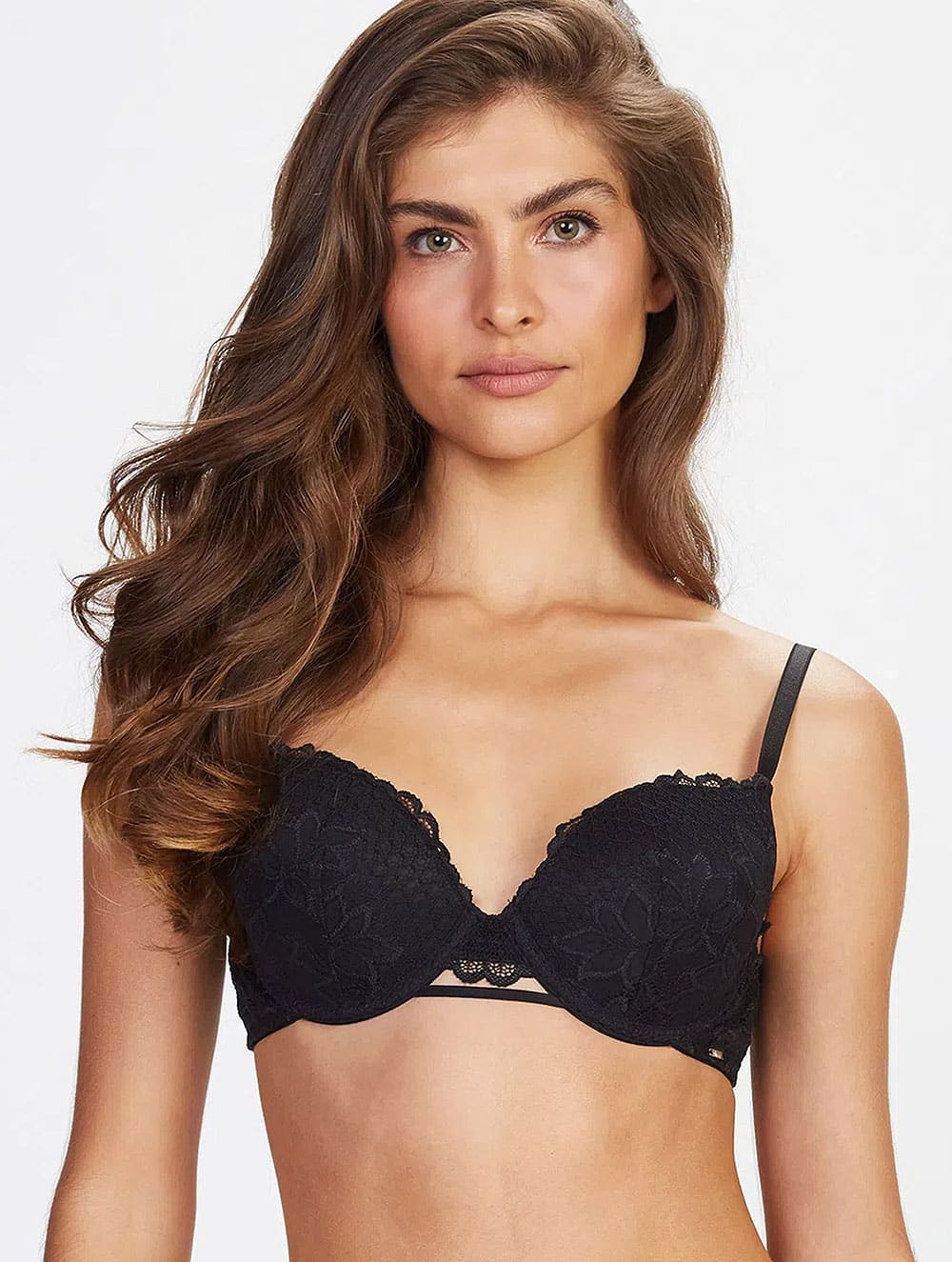Sutiã essencial, todo em renda com detalhe strappy no meio da peça.